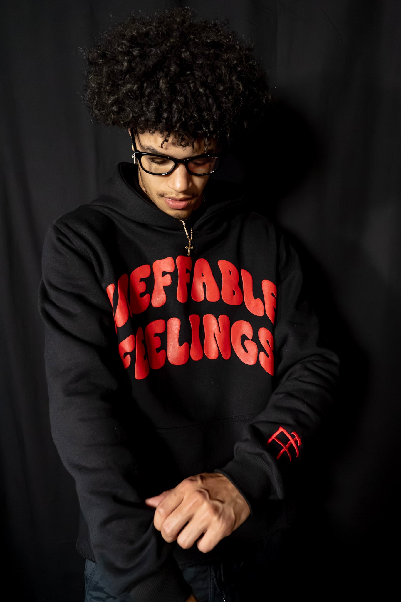 The Genesis Hoodie is the foundation of the Ineffable Feelings brand — a bold introduction to a deeper message. The front features a puff-print “INEFFABLE FEELINGS” graphic in a soft, inflated font that speaks volumes. On the back, a circular heart design surrounds the dictionary definition of “ineffable”:
