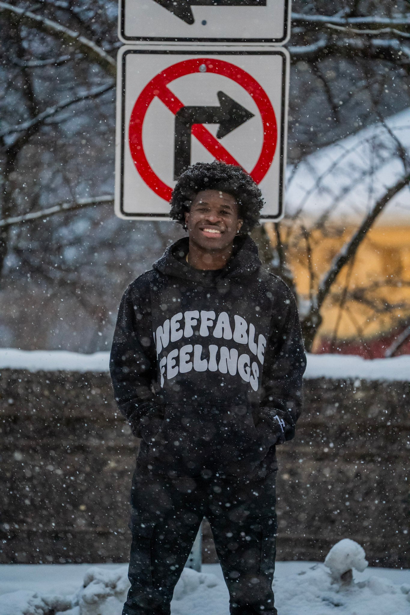 Puff-print "Ineffable Feelings" text on chest